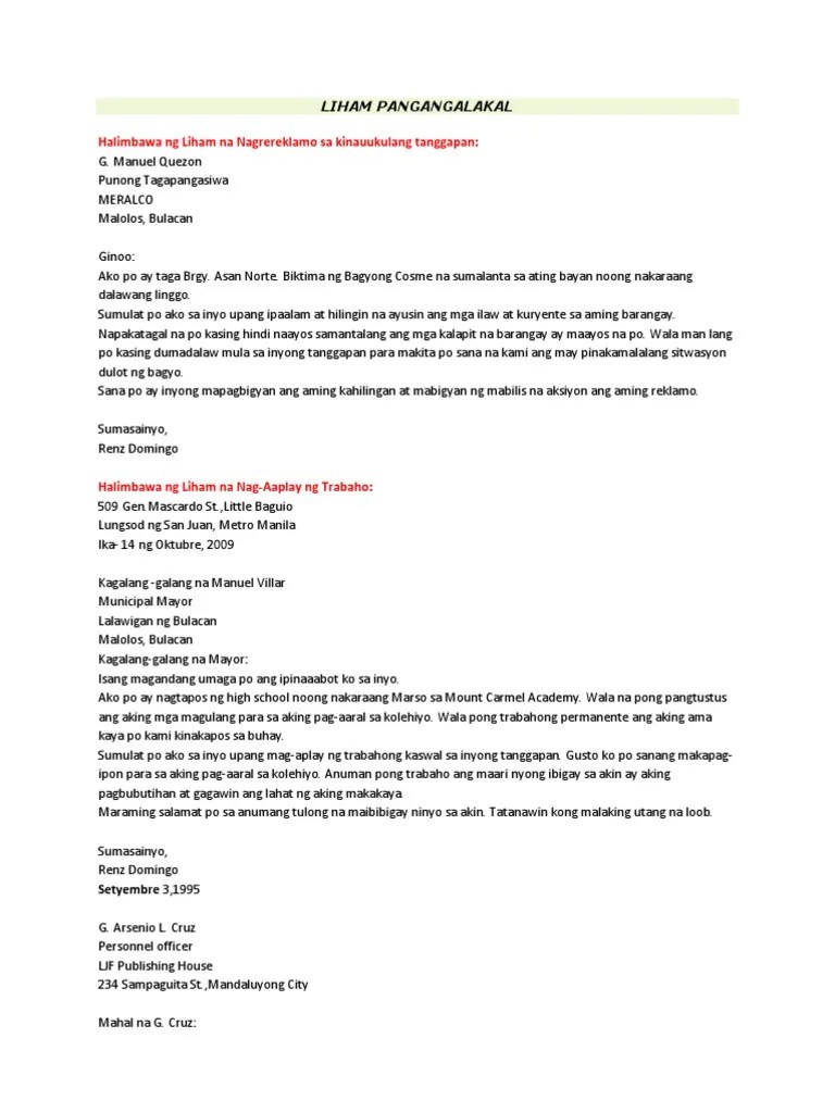 Patunguhan Sa Liham Example : Application Letter Tagalog / Modyul 5 pagsulat ng liham .. Contextual translation of halimbawa ng patunguhan liham into english. Lanang damosa, davao city oktubre 5, 2020. Patunguhan ito ay ang papupuntahan patutunguhan o padadalhan ng liham. San marcos, calumpit, bulacan bahagi ng . Patunguhan (inside address) ito ay binubuo ng pangalan, katungkulan at tanggapan ng taong ng liham.